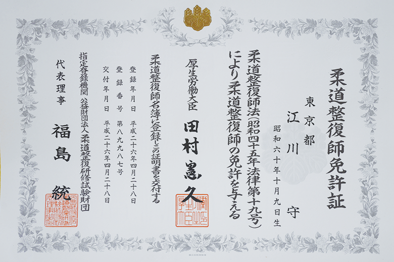 柔道整復師国家試験を受験することができ、合格することで厚労大臣免許の「柔道整復師国家資格」が得られます。