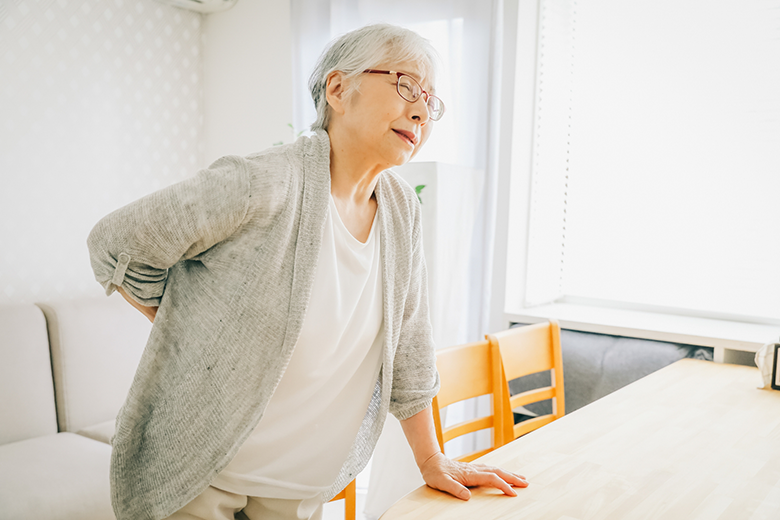 長時間の同じ姿勢や疲労の蓄積により、腰まわりの筋肉がこわばったり、関節に負担がかかることで症状があらわれます。