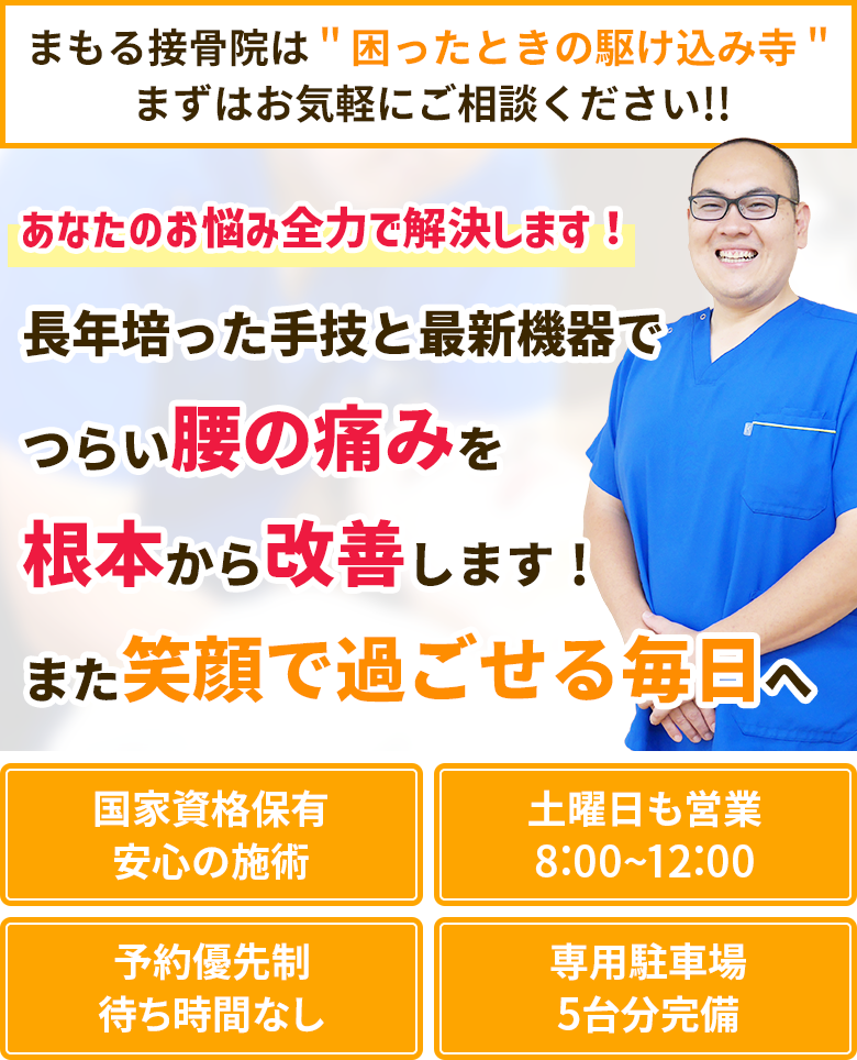 まもる接骨院なら身体の痛みや不調によって日々つらい思いをしているあなたのお悩みを解決することができます。